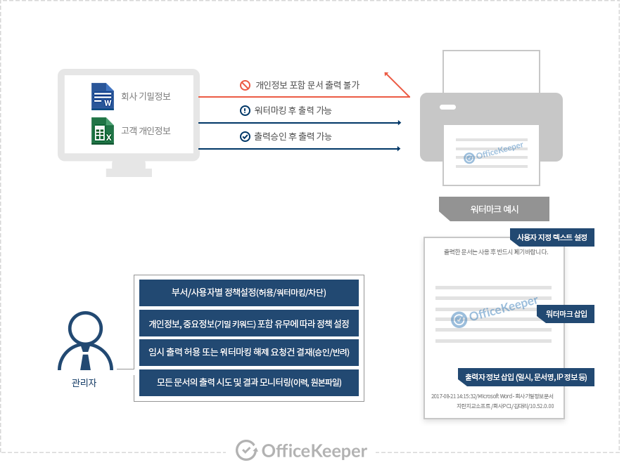 -정책에 따라 비인가된 출력, (부서, 사용자, 개인정보 포함 여부) 제어